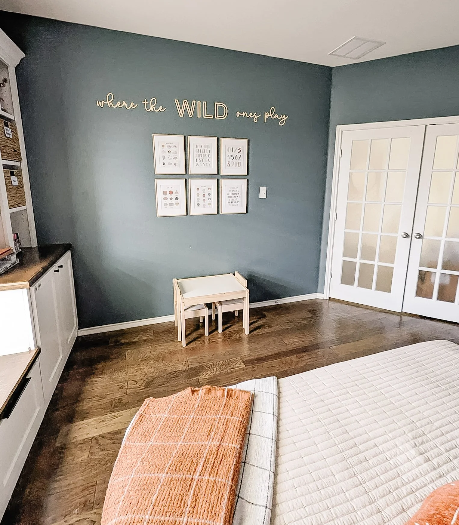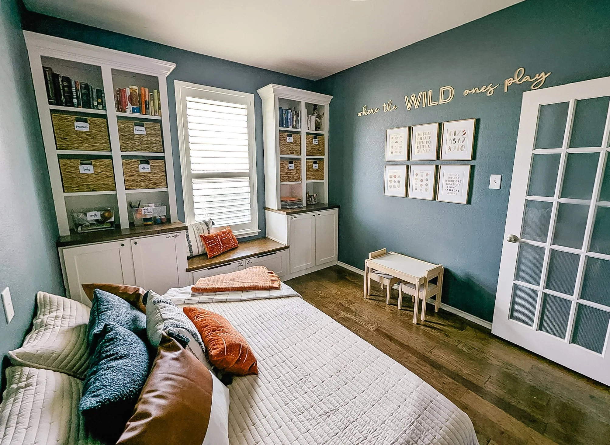 Office/Playroom/Guestroom Combination After Client Used Our Layout, Design, Moodboard, and Product List to Create Their Space