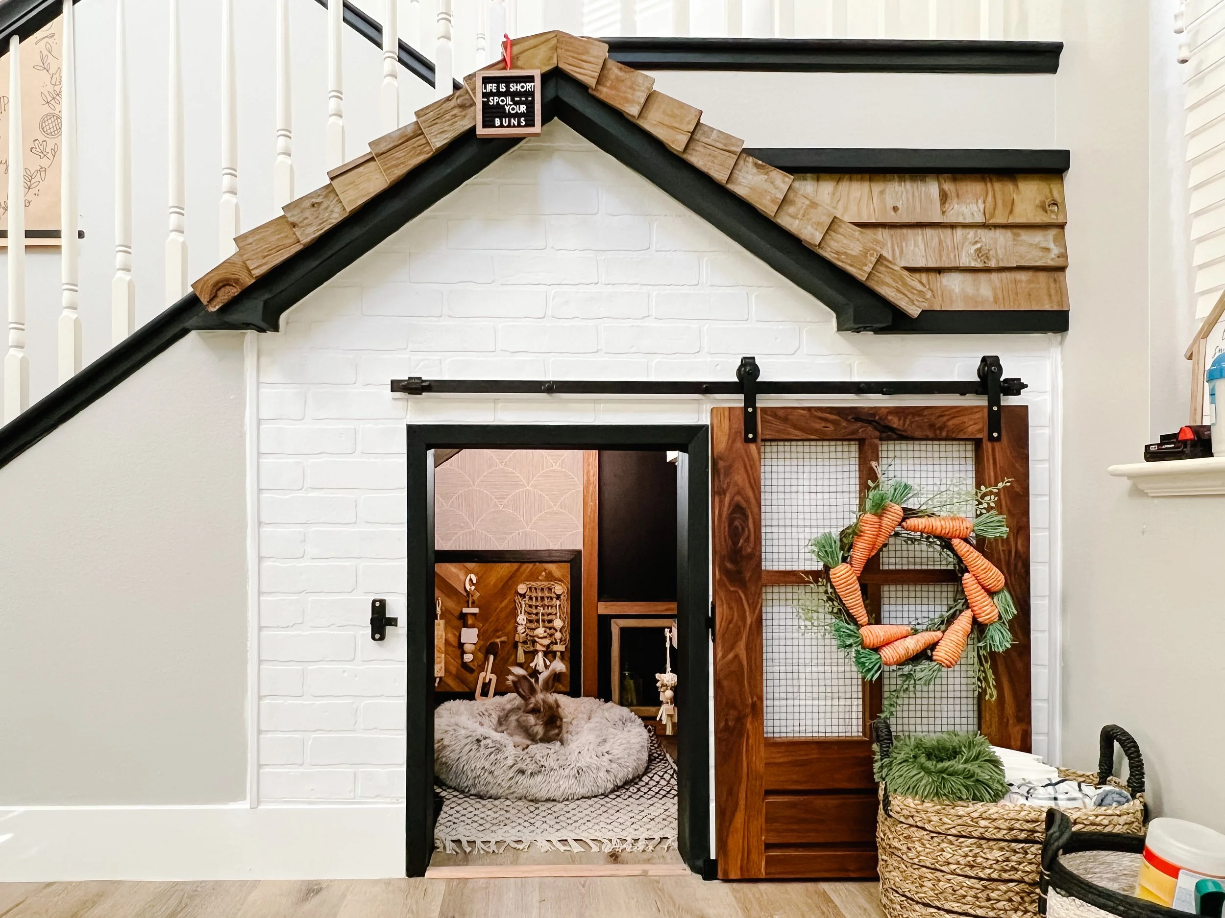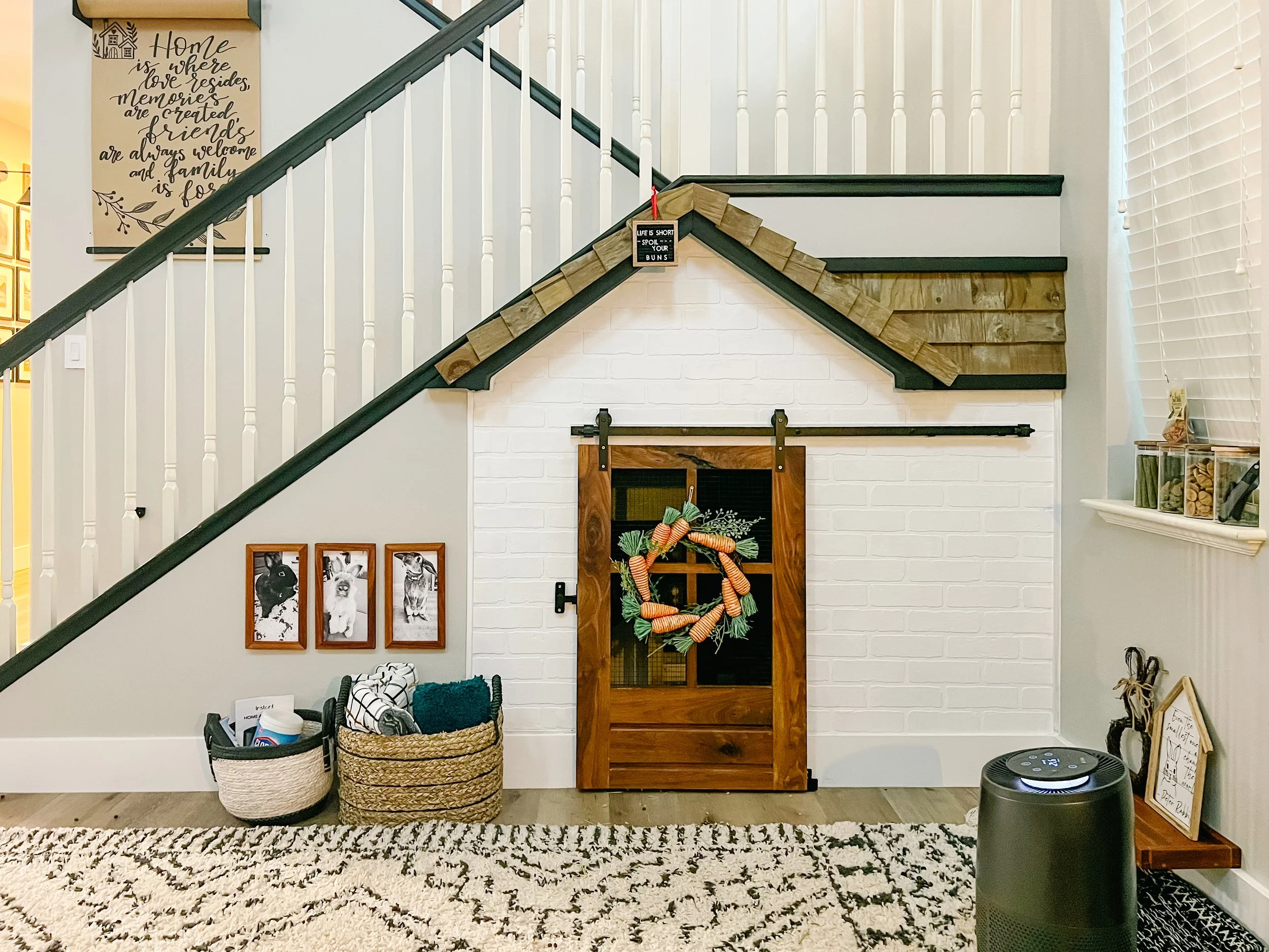 Under-the-Stairs Pet House with Sliding/Locking Mahogany Barn Door