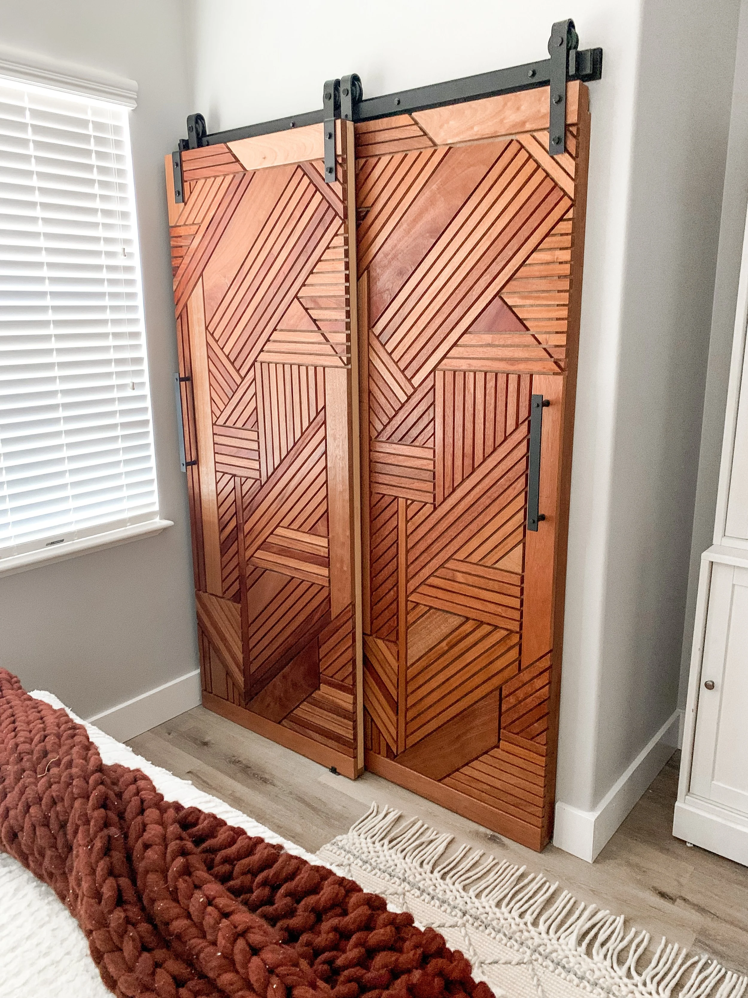 Closet Bi-Fold Barn Doors Featuring a Herringbone Design